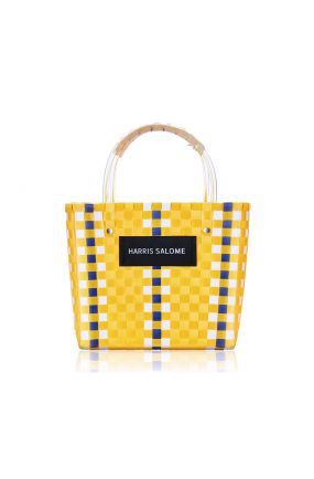 Harris Salome手工编织马赛克拼色菜篮子手提包小麦金拼色