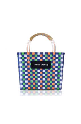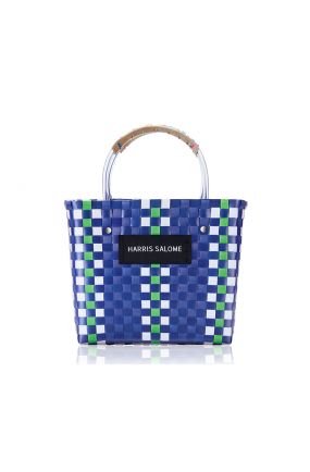 Harris Salome手工编织马赛克拼色菜篮子手提包海浪蓝拼色