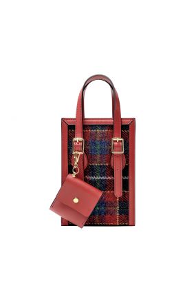 Harris Salome粗花呢英伦复古手拎单肩托特包 格纹红