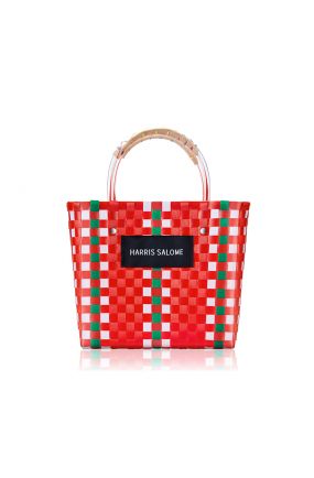 Harris Salome手工编织马赛克拼色菜篮子手提包西瓜红拼色