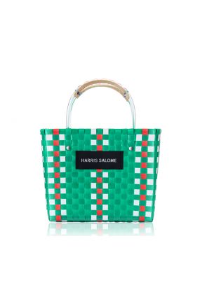 Harris Salome手工编织马赛克拼色菜篮子手提包薄荷绿拼色